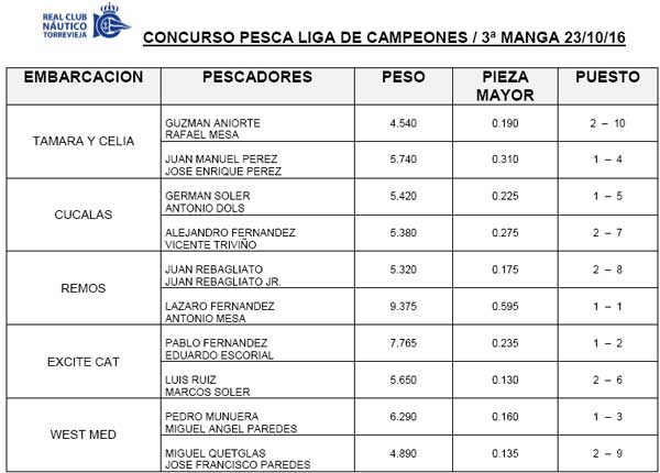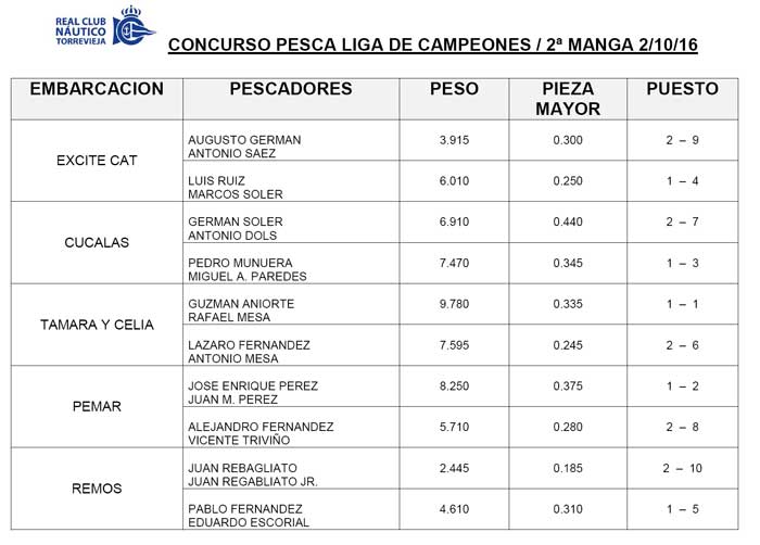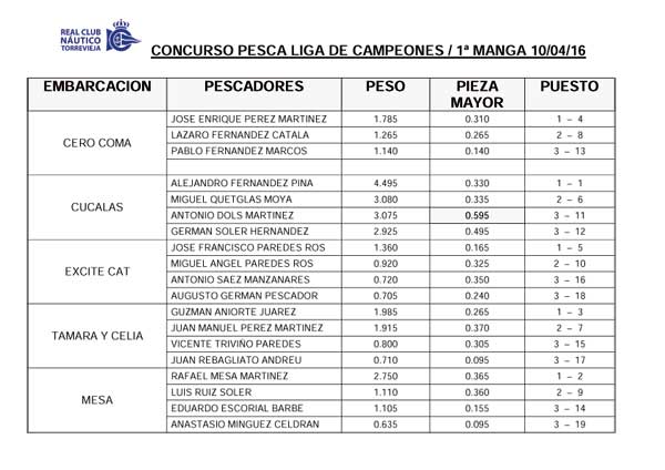 | El domingo dia 10 de Abril , se celebró en agua de Torrevieja, esta 1ª Liga de Campeones, valedera para seleccionar a los mejores pescadores del Club, para competir en los Campeonatos Provinciales y Autonómicos | |