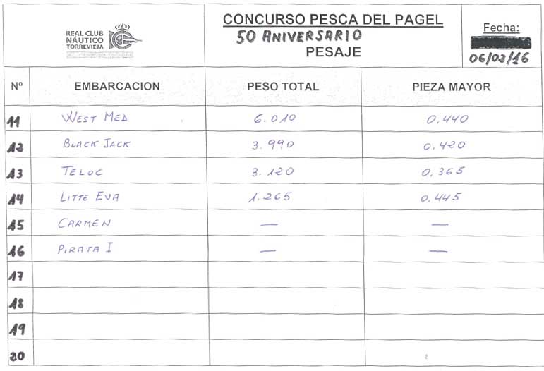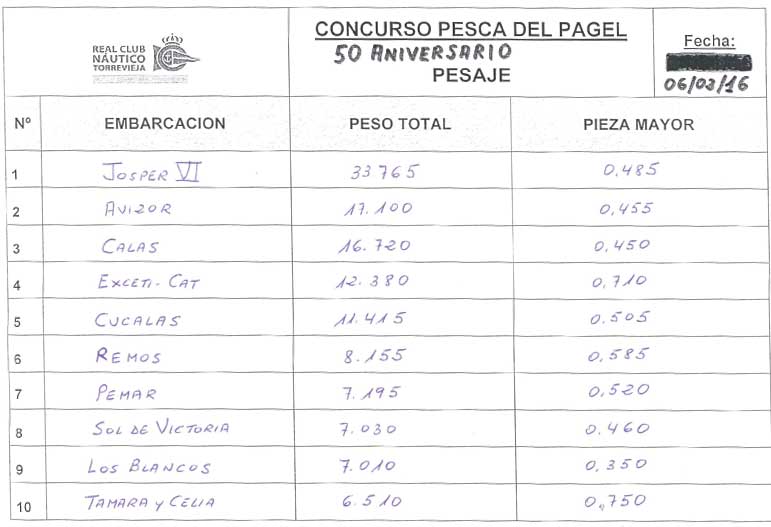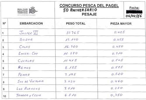 Los primeros clasificados. Embarcación JOSPER patroneda por Jose Pérez que capturaron ¡33 kg de pagel!