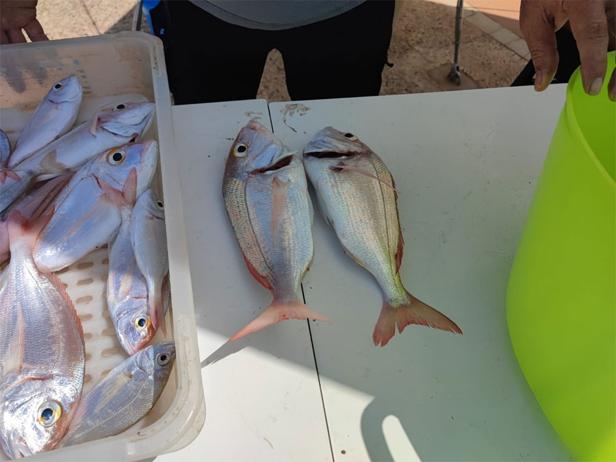 Arriba a la izda, dos buenos pageles. A la derecha :Una sorela macho (parece, ver el morro negruzco) y un pagel |