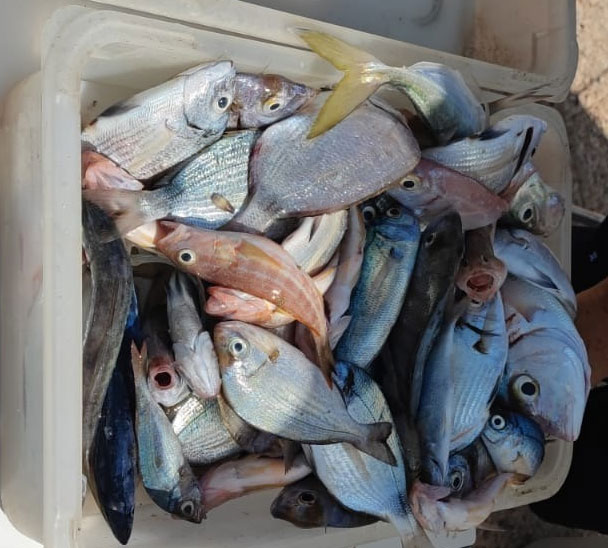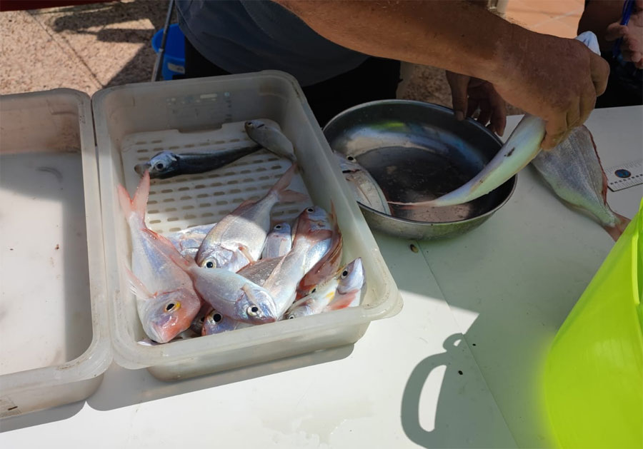 | El dia 24 de julio, se celebró esta tercera manga de la llamada Liga de Campeones, seleccionadora para otros Campeonatos provinciales o Nacionales. Participaron 8 equipos de dos pescadores cada uno, a bordo de 4 embarcaciones de este Club Nautico de Torrevieja La jornada de pesca empezaba a las 7 de la mañana , presentando las capturas ,antes de las 12,30 Pescaron 31 kg de pescado, a una media de 1,94 kg por pescador. Bajo, unas cuantas imagenes , remitidas por el Contramaestre Manolo y el delegado de Pesca. Muchas gracias |
