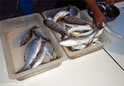 | La noche del 9 al 10 de julio, tuvo lugar esta primera manga, dedicada a la pesca del mabre. Participaron 10 embarcaciones, presentando capturas 8 tripulaciones, pescando en conjunto 32´280 kg de mabres, a un promedio por barco de 4´035 kg. Promedio mas bien bajo, en comparación con otros concursos de otros años en la misma especialidad .VER ESTADISTICA CAPTURAS DE MABRE OTROS AÑOS Bajo, algunas imagenes de las capturas, cedidas amablemente por el Delegado de Pesca , por Manolo el Contramaestre y Lorena. Muchas gracias |