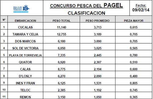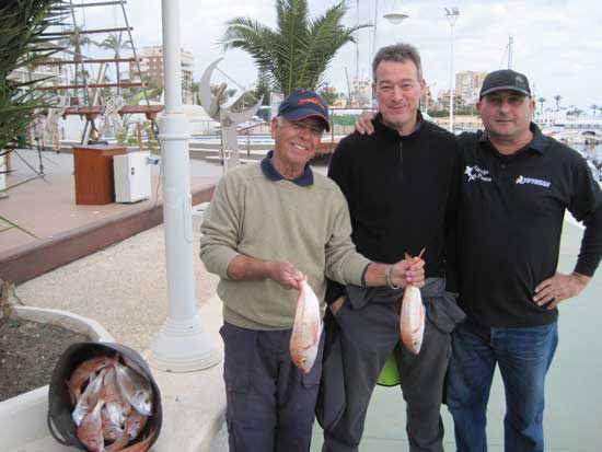 | Triunfo del CUCALA El día 9 tuvo lugar la primera manga del Concurso anual del pagel del R.C.N.de Torrevieja . (En breve mas detalles de este tradicional concurso de pesca) |