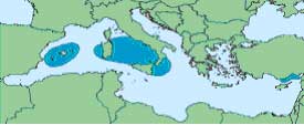 Area de reproducción del atun rojo occidental .Fuente: CICAA5, Qinetiq6 |
