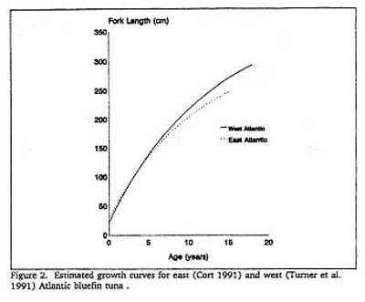 Curvas de Crecimiento para el atun rojo del Atlántico Oeste y del Este de Cort-Turner