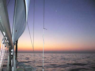 Después de cenar gozamos de la tranquila navegación en un mar casi en calma, distribuimos las guardias de 4 horas y me eché abrigado en cubierta.