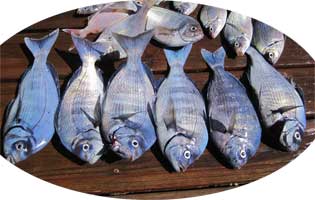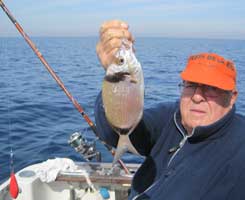 | El 23 de abril, provistos de un buen puñado de ermitaños, y de langostinos congelados, fuimos, a bordo del GINTONIC, en busca de pageles, pese a lo avanzado de la temporada. Como es sabido el pagel se pesca preferentemente en otoño e invierno. La pesca resultó muy entretenida , pues aparte de pageles de unos 400 gr, pescamos pargos medianos, chopas y vidriadas. Bajo, unas cuantas imágenes de la pesca del día |