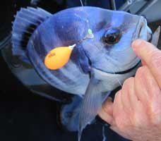 | Nada más llegar a este segundo fondeadero, logramos un buen pargo y unas cuantas vidriadas . Posteriomente conseguimos un puñado de serranos de buen tamaño , algunas vidriadas mas y alguna chopa, por lo que pronto levantamos el "hierro" para volver a puerto. |