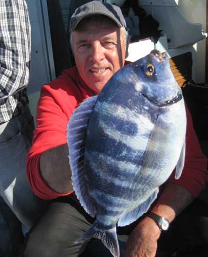 | El 18 de abril a bordo del Gintonic, pescamos en dos puntos de la cordillera submarina llamada el Carrilón. En el prmer enclave, en el que días pasados habíamos hecho una buena pesquera de chopas, esta vez solo conseguimos 4 ejemplares de chopas hembras de unos 300 gr, por lo que hicimos otro intento mas al sur, en el borde del acantilado. |