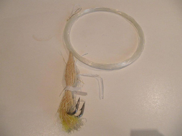 Arriba, cebo procedente de los pescadores profesionales del bonito del norte, confeccionado con la envoltura de la panocha o mazorca de maiz , probado en nuesta zona por Miguel, con un buen resultado