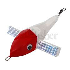 Para ésta última, utiliza cañas como las de jigging con carretes ligeros , no de curri, con líneas de sedal o trenzado . Le gusta pescar largo, a unos 70 a 100 m. Utiliza en los laterales excitadores que saltan tras la popa en superficie, con aparejo final mas bien corto, (de un par de metros), de sedal del 0´50 invisiline, con un trio de plumas o pulpito rojo. En el centro, a popa, va otro curri, lastrado con un plomo de unos 250 gr, revestido de un vinilo que simula un calamar. En él coloca un señuelo de Halco y ademas un pulpito mayor de vinilo y pluma. |