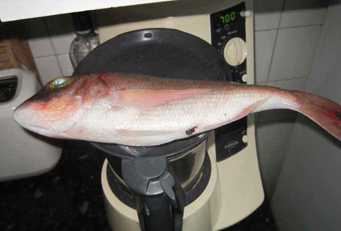 La primera "chambelá" que bajó al fondo nos ilusionó, pues no hizo mas que caer , cuando un par de toques, seguidos por mi parte de un amplio levantamiento de la puntera de la caña, se tradujo en una endiablada defensa del prmer pagelón de la mañana, (de cerca de 3 cuartos de quilo de peso), acompañado ésta vez , por un serrano de categoría |