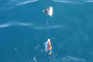 | Arriba, a la izquierda , doblete de pageles que muestra el patrón, Jose Luis. A la derecha doble de chopas medianas |
