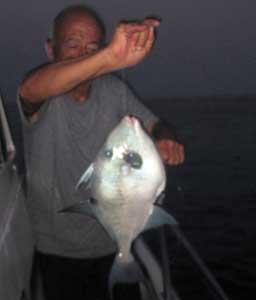 | Antes de que amaneciera ese dia de primeros de julio, provistos de lombriz beta y tita, fuimos a probar los mabres. La verdad es que el día no era muy propicio. La luna esta ya en menos de cuarto menguante, había mar con olas de mas de medio metro y soplaba algo de norte, y había corriente del mismo signo. La deriva era pues demasiado rápida. Tampoco quisimos fondearnos, ya que el mabre estaba muy escaso y los toques muy ocasionales. Bajo unas cuantas imágenes de la primera parte de la pesca de ese día |