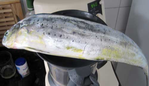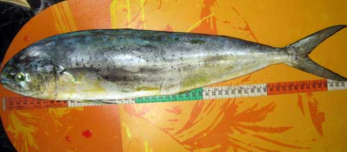 Peso actual, a finales de septiembre, de las lampugas nacidas en la primavera de este año.Talla 53 cm. peso 950 gr