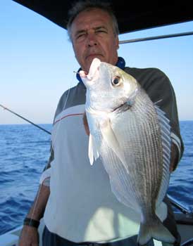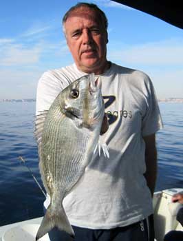 Dorada del terreno de 750 gr pescada a bordo del GINTONIC. Ese día logramos otras 4 menores |