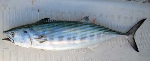 Como curiosidad les cuento que los bonitos que empezamos a pescar en agosto, habían nacido a finales del invierno de 2013 y tenían entonces entre 26 y 28 cm y unos 200 a 250 gr. de peso..Lo que da idea del crecimiento de la especie en nuestras aguas.
