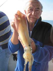 Calamar de unos 700 g. que entró a un "pajarito", pescando a embarcación fondeada |