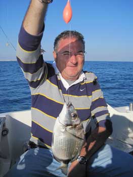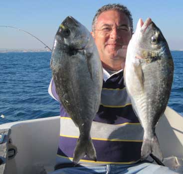 Bajo, el patrón del GLAND, despide el año con dos buenas piezas. Una brótola y una bonita dorada "del terreno". La única que subimos a bordo ese día .( Pulse imagenes para ampliar) |