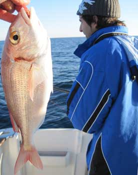 No todo son brillantes pesqueras en el dia a dia del aficionado. A veces un mal pronóstico del tiempo condiciona la pesca en enclaves en los que el pescador se siente seguro, pero en los que logra poca pesquera. Ese día nos hicimos con unas cuantas doradas de pequeño tamaño -devolviendo al mar un buen número de ellas - y unos escasos pero buenos pagelones y un solo calamar, que entró en un aparejo mixto. Eso, viendo en la sonda un buen fondo y la presencia de pescado que se mostró remolón en los dos sitios que "tocamos".