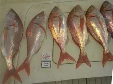 | Arriba a la izquierda cabracho o gallina, tal como se la conoce en Torrevieja. A la derecha un buen rancho de grandes pageles |