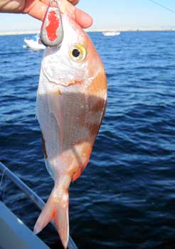 Pese a ello la pesquera fué muy bonita con alguna peza notable y un par de dobletes de pagelones.. Su tamaño medio era de 400 a 600 gr y de una talla de 32 a 35 cm, aunque hubo alguno de los pageles que sobrepasó los 3/4 de kilo Vea algunas imágenes de la pesca del dia Haga clik en las fotos para aumentar |