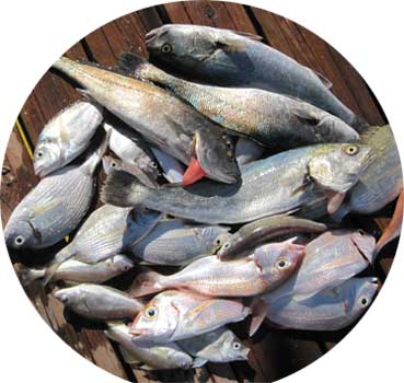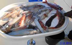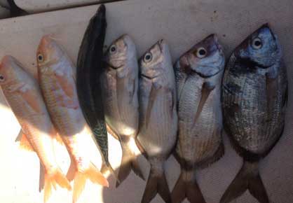 Pageles, serranos, besugo, vidriadas, un gran pulpo de kilo, calamar etc constituyeron la pesca de ese día