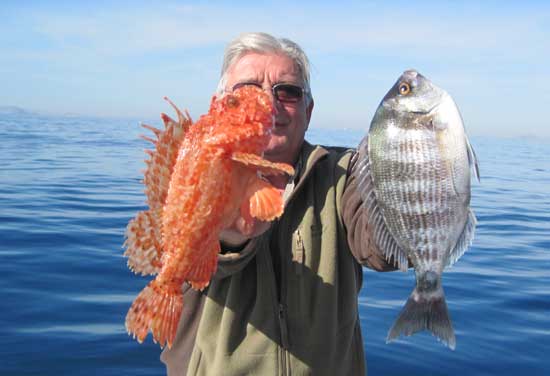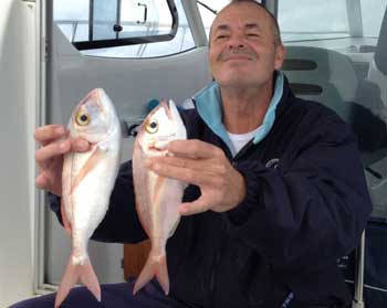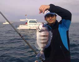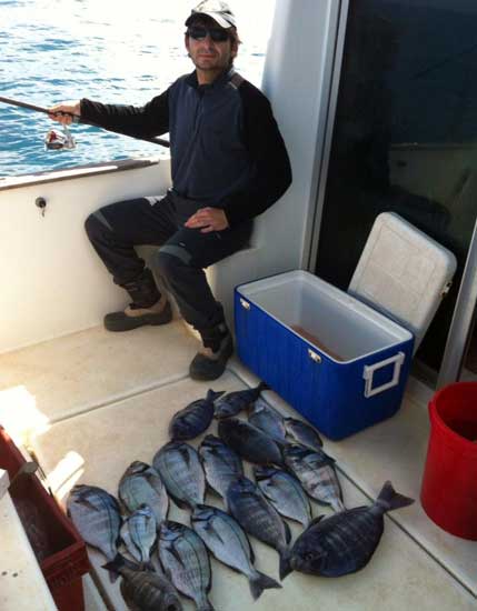 | Aquel "fatidico" día íbamos a bordo otro colega al que quiero respetar el anonimato, (no sea que me corra a gorrazos), el patrón Jose Manuel y yo .Nos llevó a un sitio querencioso de chopas, y despues de dos o 3 fondeos, cuya precisión él exigió desde el primer momento, empezó a darnos, a mi sufrido compañero y a mí,"un repaso a chopas" que fue -lo confieso-un verdadero trauma para mi amor propio de veterano pescador con mas de 60 años de pesca a bordo de una embarcación . Dicho percance, trauma, paliza , desgracia, humillación o lo que uds quieran llamarle, hizo que mi compañero de paliza me dijera ya en el coche de vuelta a casa : -Andrés: esto no ha ocurrido nunca ¿Está claro? Menos mal que aunque pocas veces, posteriormente, y de un modo separado, le hemos podido dar a nuestro anfitrión algun que otro " sobo" , cosa que nos ha compensado en parte, de aquel mal trago de aquel día, en el que le vímos subir a J.Manuel chopa tras chopa, para unas pocas que nosotros lográbamos pescar . Y les voy a revelar, aunque la mayoría de mis lectores ya lo sepan, parte del secreto ( por llamarle de algún modo) -Por supuesto que los sitios querenciosos hay que aprenderlos, y en esto, lo siento , pero no puedo ayudarles (por "competencia profesional y secreto confiado") - Es necesario el fondeo con precisón.Ya lo he dicho antes. Si las chopas están en lo mas alto del acantilado submarino, o en la ladera de fuera de las piedras, hay que colocar alli el cebo, aunque tenga que fondear otra vez .Pero procure no hacerlo muchas veces, pues puede auyentarles del pesquero.Para ello estudie con el GPS la deriva del barco a barco parado o compruebe la orientación de los fondeos de los barcos de la zona, ya que ésta está condicionada, no solo por el viento, sino ademas por la corriente marina. - Hay que aprender a interpretar el toque sutil - la mayor parte de las veces- de la chopa y dejarla comer.La chopa no es un depredador, no come bruscamente, sino que toma el cebo con suavidad, lo paladea y luego lo traga.Todo esto sin desplazarse rápidamente. Por ello, lo que notaremos es "un blandeo" (término acuñado , yo creo, por J.Manuel) de la fina y sensible puntera de la caña.Ello quiere decir que con una puntera poco sensible, ( como lo que llevaba yo aquel "aciago" día ) probablemente solo notará en levísimo toque que confundirá, lo mas posiblemente con el de la morralla y no le hará ni caso. - Requiere pues una gran atención y concentración. Esperar ese primer "blandeo" y al siguiente dar un amplio y brusco tirón para clavar Bueno , les deseo suerte y que no les pase como a mi aquel día......que segun mi colega no sucedió |