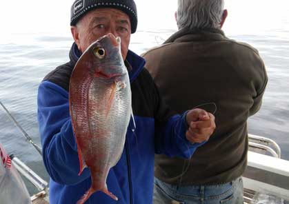 | Poco a poco, se fue animandola cosa al lastrar nuestros aparejos con 140 gr de plomada para contrarestar en parte la intensidad de la corriente. Vean bajo unas cuantas imágenes de la pesca bonita de ese día | |