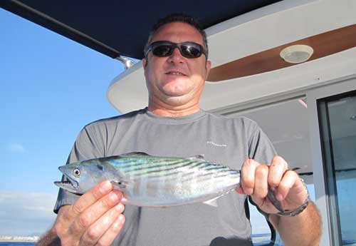 En las 2 primeras semanas de Septiembre, en el que escribo estas líneas, varios barcos deportivos han salido ya a tantear el Curricán costero tras lampugas, bacoretas, melvas, o bonitos. El día 10 lo hemos hecho nosotros a bordo del Gland. La mala mar nos ha mantenido en sondas de 54 a 30 m, logrando numerosas picadas, en su mayoría de lampugas. Los escasos bonitos capturados están entre los 600 a 800 gr. Las bacoretas del año son mas pequeñas y no llegan al cuarto.