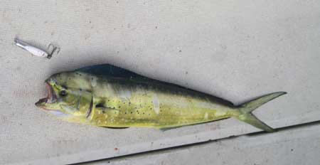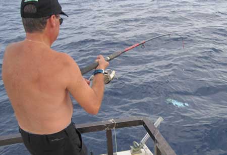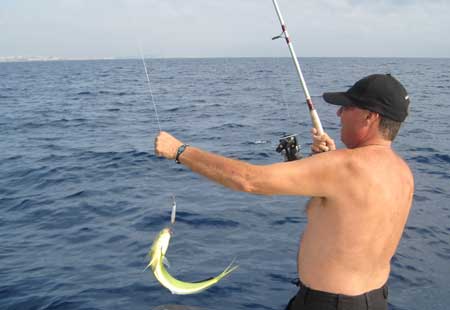 Una lampuga algo menor es izada a bordo |
