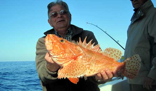 etc hecha a bordo del SANTA MONICA, con base en S.Pedro del Pinatar, de los buenos pescadores y amigos, Pepe Medrano y su hijo. Fué hecha utilizando de cebo ermitaños y langostino congelado, en 40 metros de sonda, frente a Campoamor