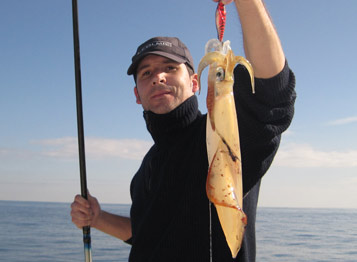 El 27 de diciembre aprovechando un día de bonanza , pero eso sí, con temperatura de 5 a 6 grados a la orilla del mar, hicimos a bordo del Chambel dos una buena pesca a unas 9 millas al SE de Torrevieja. Pescamos en 40 m. de sonda. Como el terreno ya conocido de otras veces, era de casacajo y fango y se veían manchas por encima del piso sugerentes de calamares, pescamos al volantín incluyendo cada uno, un "pajarito" en la parte alta del aparejo, unido al mismo también con una bolita y un cm de sedal. Los cebos que utilizamos para el pagel y vidriadas fueron ermitaño y calamar congelados. Logramos una gallineta, un puñado de pagelones de 300 a 500 gr, y vidriadas alguna de las cuales se acercaba al medio kilo. También Manolo levantó un par de calamares que a estas fechas tienen ya el medio kilo