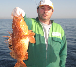 Gallina o cabracho de cerca de los dos kilos pescada a bordo del Chambel dos, en el mismo pesquero, al día siguiente |