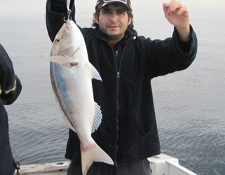 Arriba mis compañeros, con las mejores piezas: Chopas de 3 cuartos al kilo y una corva o corvallo de 1,100 y 43 cm de larga. Bajo puede ver otras imagenes de la pesca, incluido algunos dobletes de chopas de medio kilo, Pulse fotos para ampliar