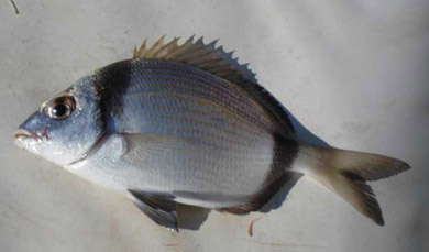 Quiero incluir las fotos de dos especies muy bonitas que capturamos en el mismo día , y que tienen nombres semejantes. Una es mas conocida: la vaca serrana (Serranus escriba) (a la izda), perteneciente al genero de los serranus ( como la serrano-cabrilla o el merillo). La de la derecha es mas rara de capturar, es la vaqueta ( Symphodus meditérraneus) de la familia de los lábridos, como tordos, viejas etc . Es un ejemplar macho, adulto. Las hembras tienen una coloración algo diferente |