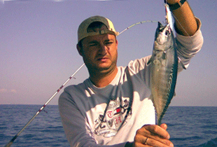 Apesar de esto, al curri aún se pueden lograr algunas bacoretas, cuyo crecimiento es por lo que se experimenta, mas bien lento- comparadas con lampugas o atunes-ya que su peso está todavía por debajo del medio kilo en los ejemplares nacidos esta primavera, como estos que muestra nuestro amigo Grau a bordo de su barco, que entraron a rapala y cucharilla irisada. En cambio las lampugas sobrepasan algunas fácilmente el kilo. |