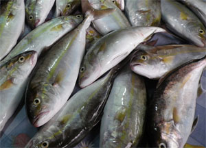 Parte de una pesquera de seriolas de hecha por Emilio Gil en 30 m. de sonda al jigging. Su peso entre 500 y 800 gr. cada una
