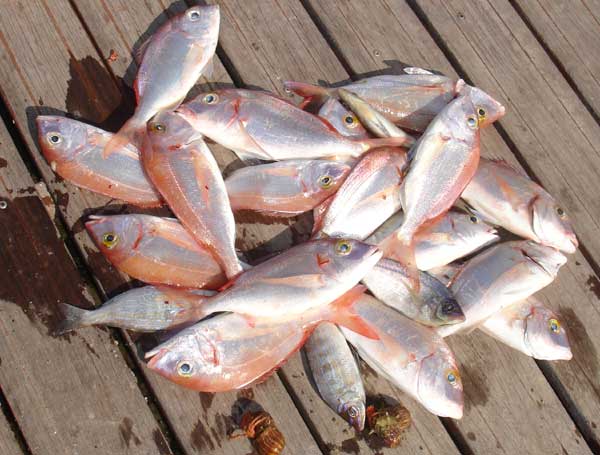 Pageles de 300 a 400 gr y algunas chuclas. Delante cangrejos ermitaños cebo predilecto , junto con la gamba viva, para los pageles de este tamaño.