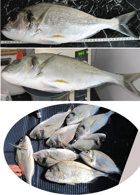 | Doradas sargos y vidriadas a bordo del GLAND |