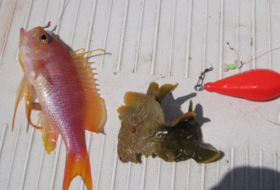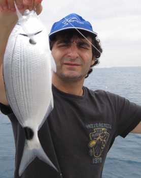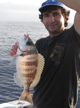 Una pieza poco común en la pesca desde embarcación y de las que conseguimos unos cuantos emeplares de buen tamaño que hacína una defensa endiablada para su tamaño |