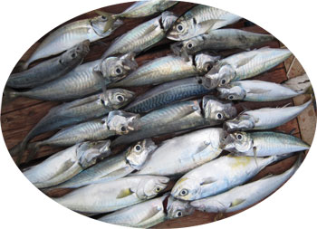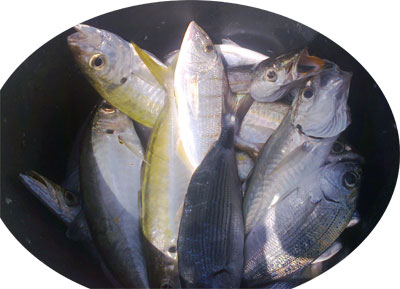 Sorelas, obladas, espetones, jureles fueron las mas abundantes capturas de la mañana, junto a algún mabre |