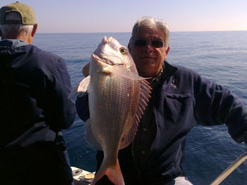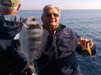 Bajo, Pardines, nuestro compañero de pesca con una chopa y un buen pagel de medio kilo.