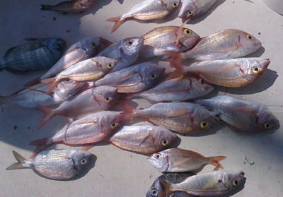 Pageles vidriadas y alguna dorada y brótola .Foto enviada por J.M.Menargues, pescando con Melgarejo