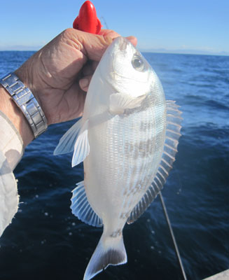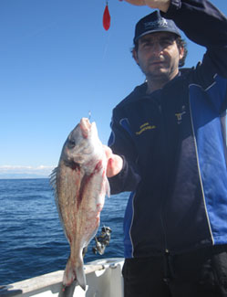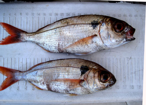 | Bajo, las especies mas comunes en estos fondos , besugos, pollos y jureles