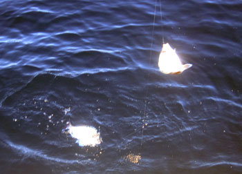 El pronóstico del tiempo que daba vientos frescos del sur, a partir del mediodía, nos empujó de nuevo a un caladero próximo a Torrevieja. Ese día, conociendo previamente la corriente por la imagen que dejaba el barco a la deriva, en la pantalla del plotter, y la vista de otros barcos de colegas aproados en una determinada direccion, ( aprovisados, dicen en Torrevieja), caímos justamente en el pesquero al primer intento.