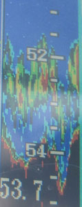 Desafortunadamente, nuestra alegría duró poco. Estábamos en un laderón de 240 m. de sonda (arriba hay 220 m.) y el ancla fué garreando poco a poco hacia abajo, sacándonos del sitio.Pese a nuevas "enmendás", el pescado que encontramos luego fueron sobretodo, jureles negros, "pollos" y besugo de menos categoría .