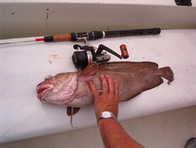 Brotola de 3,300 Kg y 60 cm. conseguida en estas piedras