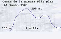 el llamado "Plis plas". Fuera de él hay profundidades de unos 500 m. Recorrido en dirección 330º se extiende una milla. Presenta recorrido en ese sentido dos grandes elevaciones la mayor de las cuales alcanza los 290 m. de sonda
