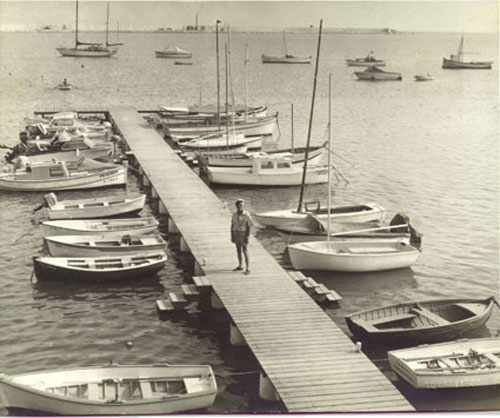 1969. Pasarela unos meses después . En el centro D. Tomas Lanzarote, primer presidente del Club. Enfrente fondeadas a la gira se ven a la derecha el "Dos amigos" y mas al centro el "San Antonio" barcos de pioneros deportivos de la pesca al chambel.