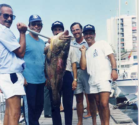 Mero de 16 kilos conseguido con la misma tripulación en julio de 1988 a bordo del Chambel